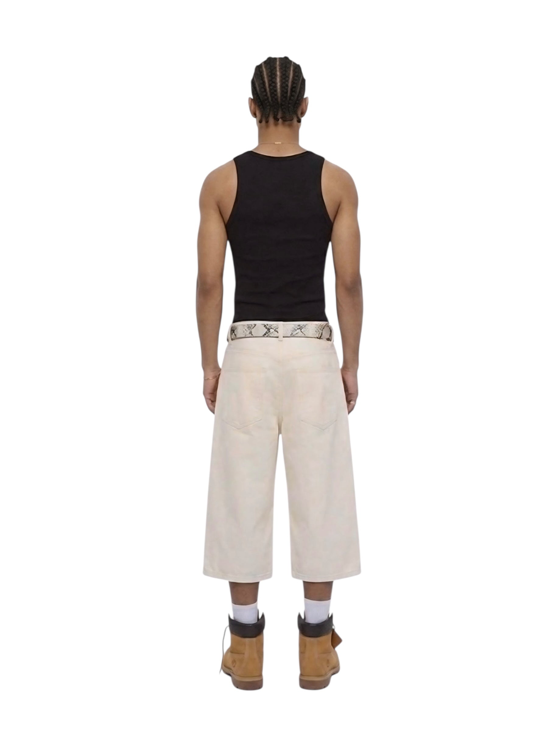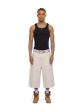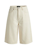 WIDE LEG DENIM SHORTS - ECRU